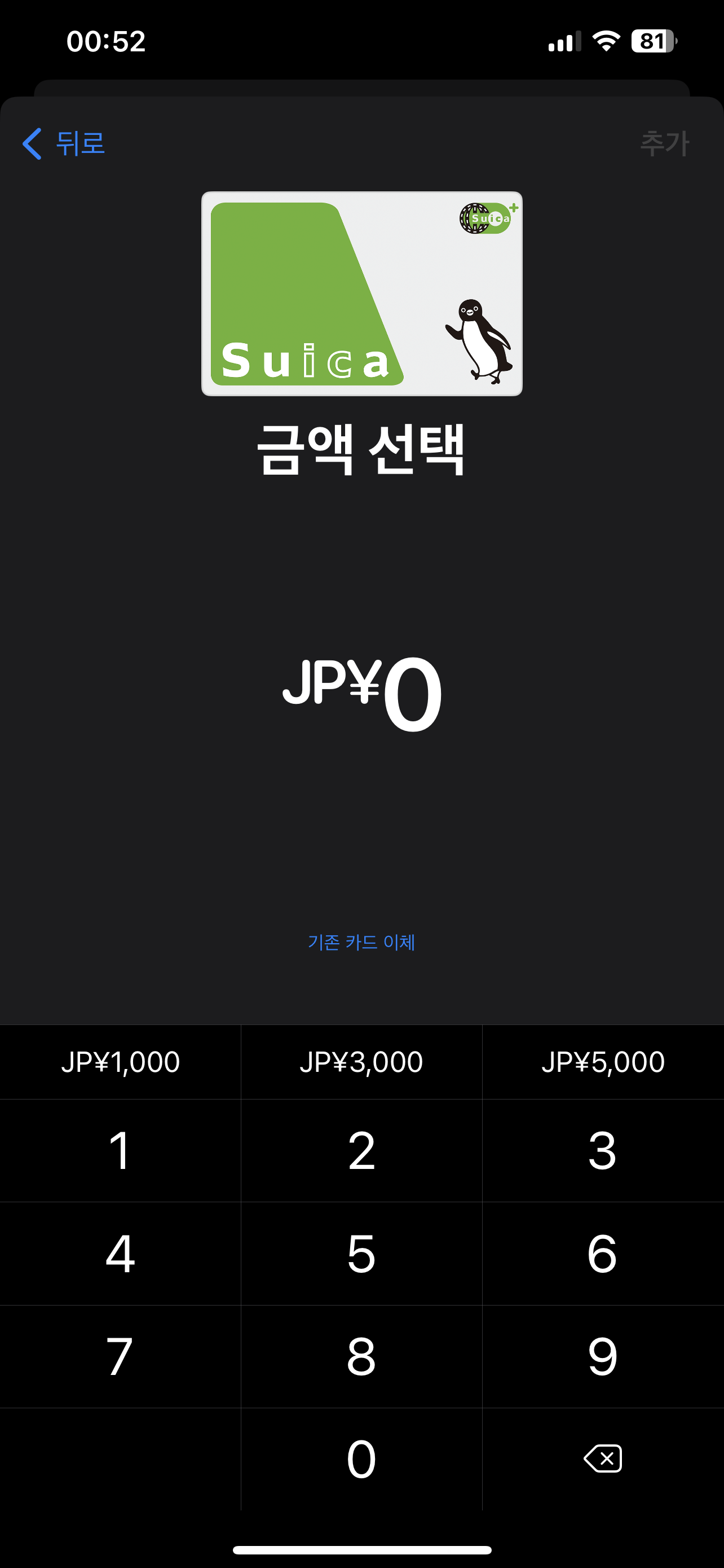 - Wallet 앱에서 "Suica 추가" 선택.