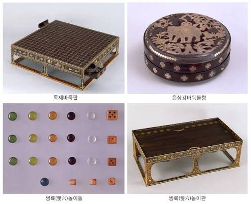 8세기경 쇼소인에 전해진 신라산 바둑판. 소나무 재질의 판 위에 상아로 바둑선을 긋고 금박으로 화점(花點)을 표시했으며, 바둑돌을 보관하는 서랍이 달린 정교한 작품이다 . 일본 학계에서는 이 바둑판이 신라에서 제작되어 헌상된 것으로 추정하고 있다 .
