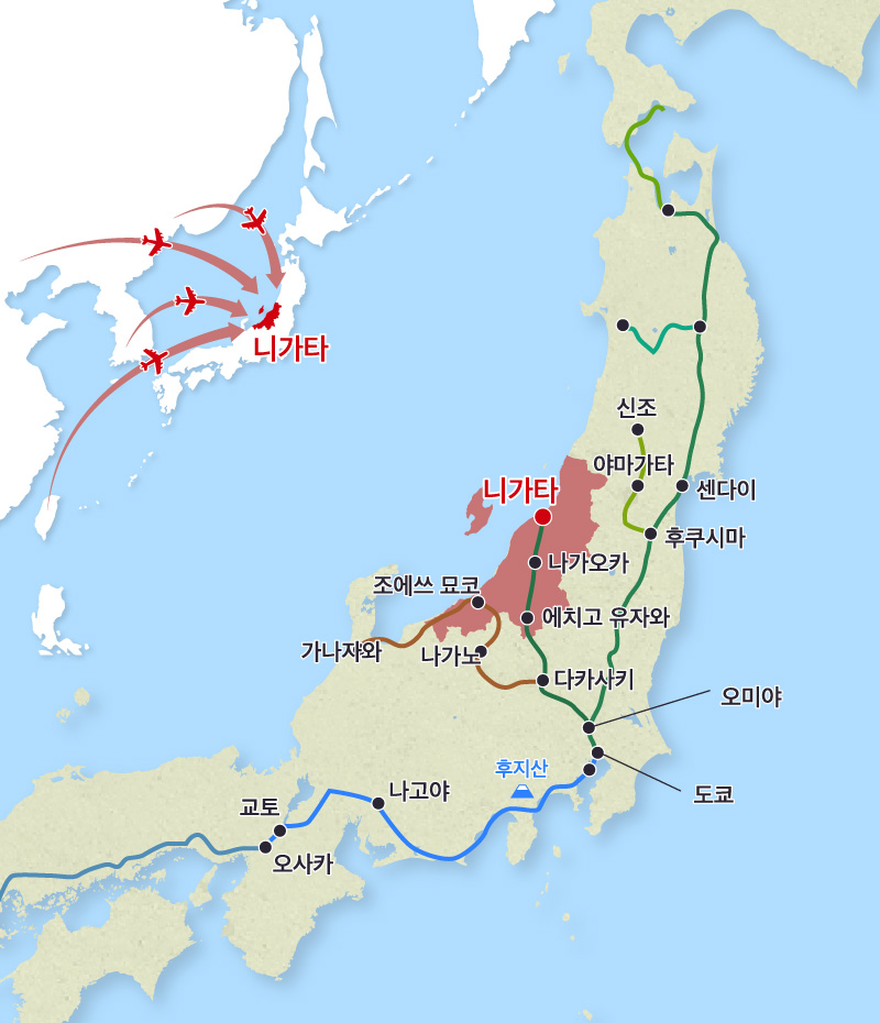 • 기점: 니가타시(新潟市)를 거점으로 이동