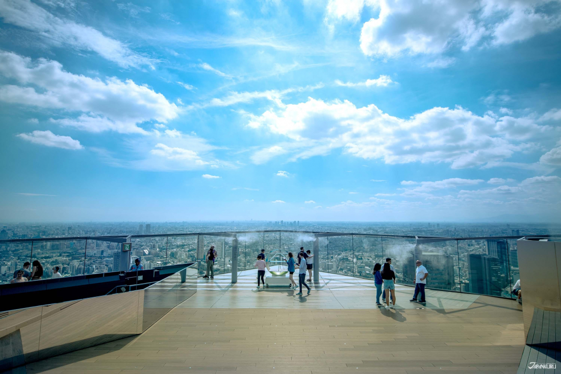 - 템보 갤러리아 (450m): 템보 갤러리아는 나선형 통로를 따라 450미터까지 올라가며 마치 공중에 떠 있는 듯한 느낌을 줍니다. 특히 ‘공중 산책’을 테마로 한 갤러리아의 끝 부분에 다다르면, 451.2미터 높이에서 도쿄와 그 너머의 풍경을 감상할 수 있습니다.