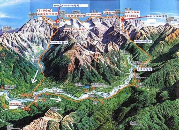 히다산맥은 일본 알프스의 북부에 위치하며, 일본에서 가장 높은 봉우리인 후타카산(富士高岳, 3,190m)을 포함하고 있습니다. 이 지역은 강한 풍화 작용과 침식으로 인해 험준한 암벽과 깊은 계곡이 형성되어 있어, 등산객들에게 도전적인 코스를 제공합니다.