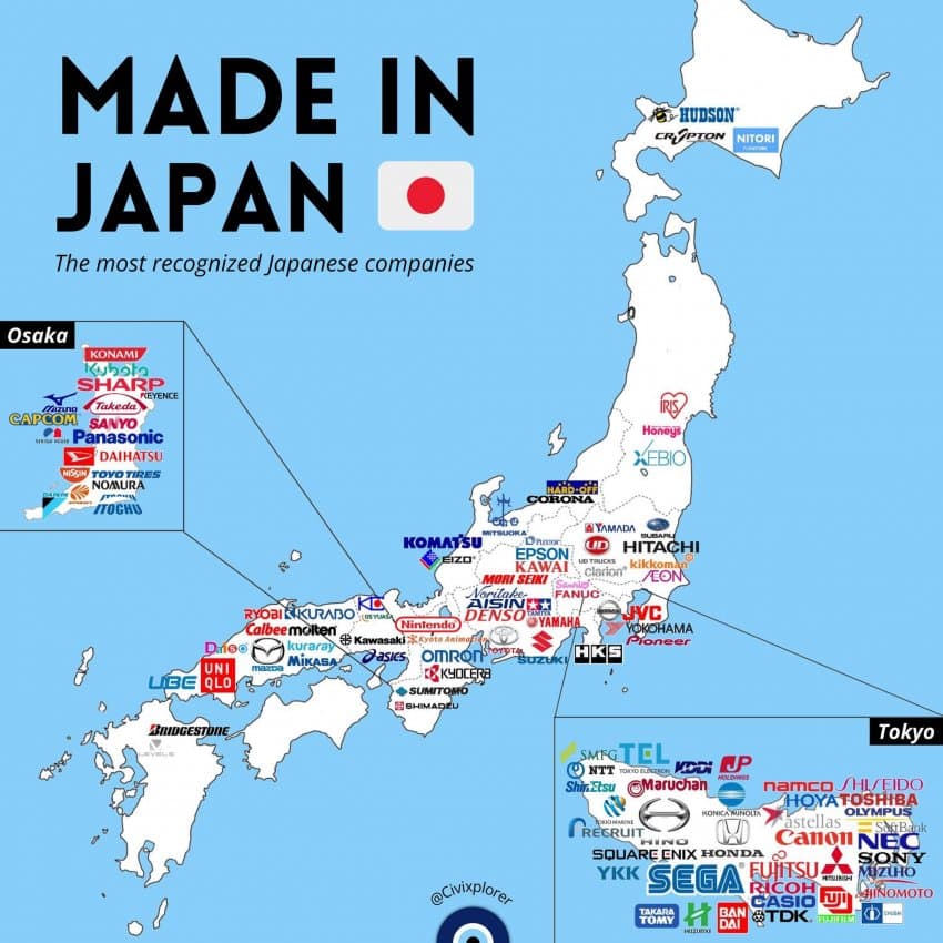 간사이 지역(오사카·교토 중심): 일본 제2의 경제권으로 전통적인 상공업 중심지이다. 오사카를 비롯해 교토, 고베 등지에 많은 제조업 대기업이 자리잡고 있으며, 가전전자, 제약, 화학, 게임산업 등 다양한 산업이 집적되어 있다. 실제로 간사이 지역은 일본 전체와 비교해 수출 품목에서 전기기기, 기계, 화학제품의 비중이 높을 만큼 관련 글로벌 제조기업들이 다수 포진해 있다 . 예를 들어 파나소닉(오사카), 샤프(오사카), 교세라(교토), 닌텐도(교토), 다이킨(오사카) 등이 이 지역 출신의 전자·기계 기업이며, 다케다약품(오사카), 시오노기(오사카) 등 제약업도 강세다. 간사이는 역사적으로도 **상업 중심지(예전의 상인 도시 오사카)**로 발전하여 도쿄에 본사를 두지 않은 전통 기업들이 많고, 현재도 오사카부는 일본 상장기업 본사의 약 9%를 차지해 도쿄에 이어 두번째로 높다 .