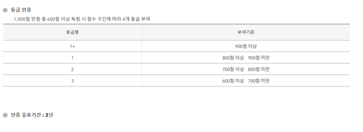 - 인증 유효기간은 3년이며, 만료 후 재시험을 통해 갱신 가능합니다.
