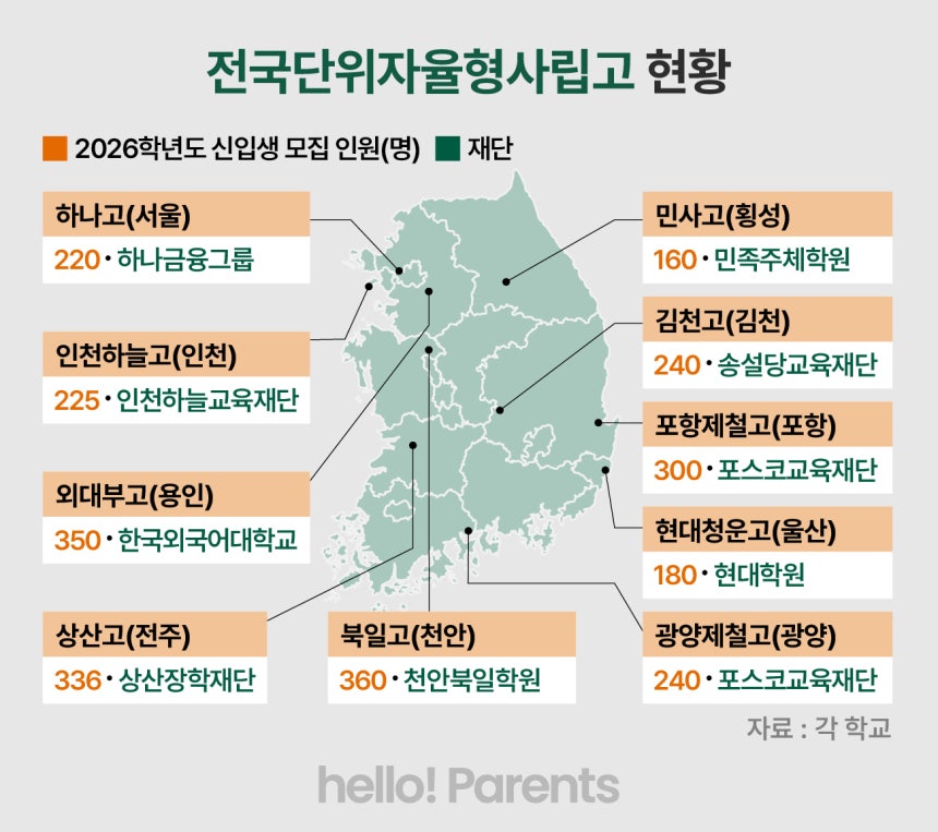 7. 입시우위 및 광사고 비교 – 변화된 입시 환경에서도 이들 자사고의 경쟁력은 여전합니다. 내신 등급제가 완화되고 평가항목이 정성적으로 전환될수록, 고교학점제형 교육과 풍부한 심화 과목 이수 경험을 제공하는 자사고가 수시 학종에서 유리한 위치에 있습니다 . 실제 입시 전문가들은 “자사고는 질적 평가 중심의 입시에서 상대적으로 강점을 가진다”고 분석합니다. 한편 광역단위 자사고(예: 서울 휘문·중동·세화고, 인천 포스코고 등)와 비교할 때, 전사고는 전국모집으로 높은 학업 성취도를 가진 학생들을 선발하며 기숙사 생활을 하는 반면 , 광사고는 해당 지역 학생만 선발하고 등급 경쟁 외에 추첨·면접 등 절차가 다릅니다. 최근 광사고도 상위권 실적이 급격히 향상돼 자사고의 대체 옵션으로 부상하고 있으나, 여전히 SKY·의대 진학에서는 전국단위 자사고가 우위를 점하고 있습니다.