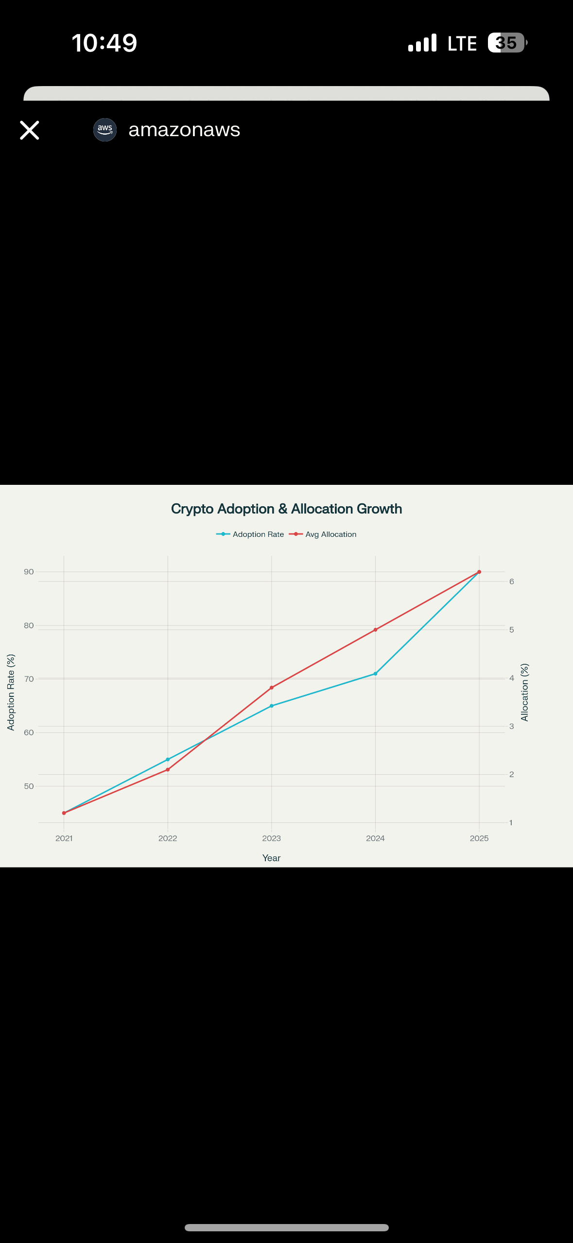 암호화폐는 기관투자자 포트폴리오에서 가장 빠르게 성장하는 자산군 중 하나로 부상했다. 2025년 현재 전 세계 기관투자자의 71%가 디지털 자산에 투자하고 있으며, 이는 2021년 45%에서 크게 증가한 수치이다.