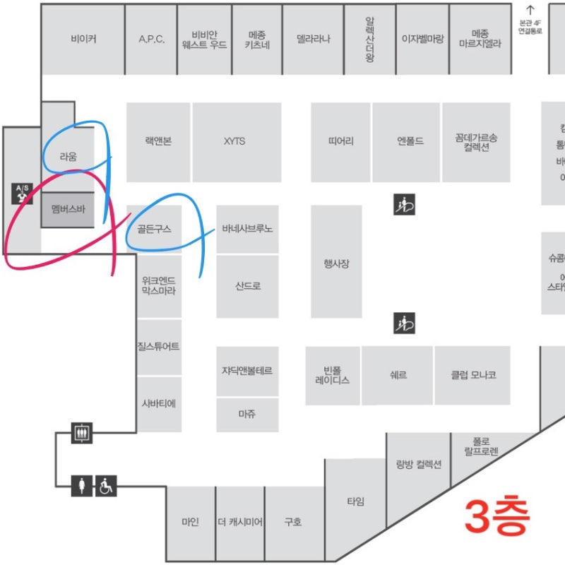 • 위치: 골든 구스 매장 뒤쪽, 라움 매장 옆에 자리하고 있습니다.