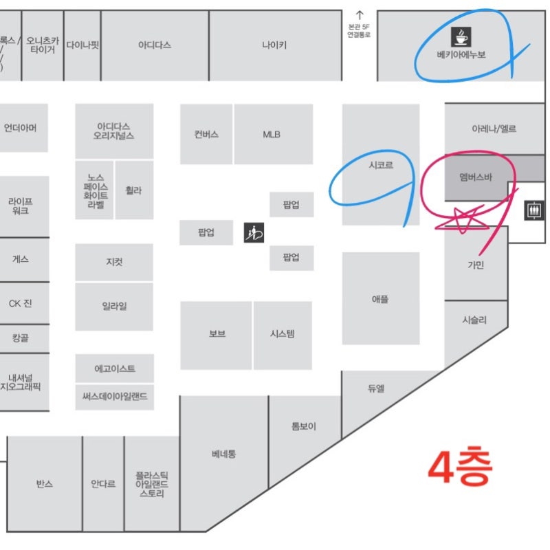 • 위치: 골든 구스 매장 뒤쪽, 라움 매장 옆에 자리하고 있습니다.