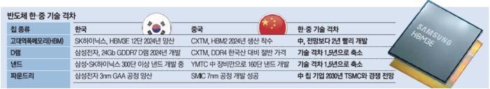 중국 반도체 기업들은 정부의 지원, 공격적인 가격 정책, 인재 영입 등을 통해 삼성전자와 SK하이닉스를 빠르게 따라잡고 있습니다. 특히 D램과 낸드 플래시에서 1~2년의 기술 격차를 기록하며 글로벌 시장에서 점유율을 확대하고 있으며, HBM과 AI 반도체 분야에서도 도약을 준비하고 있습니다.