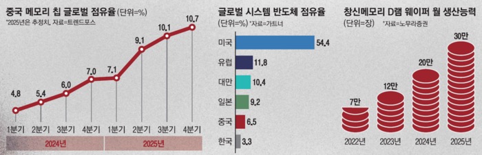 • **CXMT(창신메모리)**와 **YMTC(양츠메모리)**는 각각 D램과 낸드 플래시 분야에서 기술적 격차를 빠르게 줄이며 시장 점유율을 확대하고 있습니다.