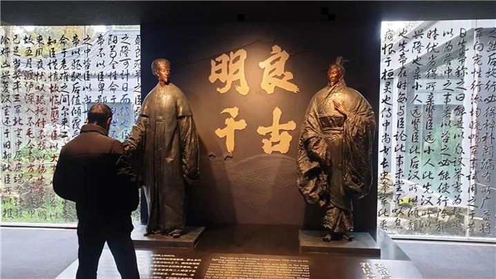 • 유비와 제갈량의 동상 앞에서 사진 촬영