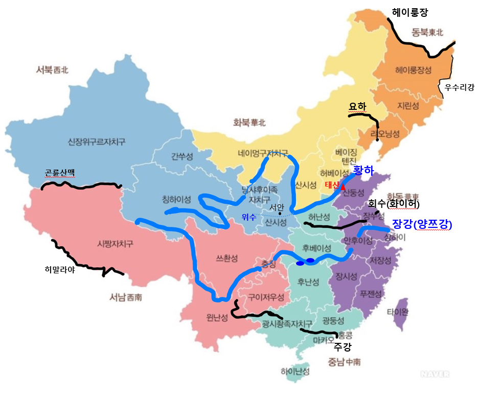 중국의 동부 해안지역은 비옥한 평야와 광대한 강 유역(황허강, 양쯔강, 청하강 등)이 펼쳐집니다.