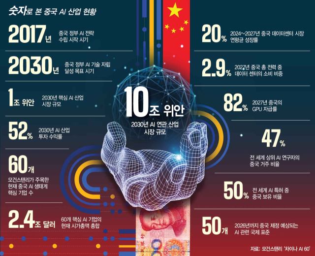 중국의 핵심 AI 산업은 2030년까지 약 1,400억 달러 규모로 성장할 것으로 예상되며, 인프라 및 부품 공급업체 등을 포함하면 1조 4,000억 달러에 달할 전망입니다. 장기적으로 AI 혁명은 효율성 증대, 생산 프로세스 최적화, 새로운 제품·서비스·일자리 창출을 통해 생산성 향상을 이끌 것입니다.