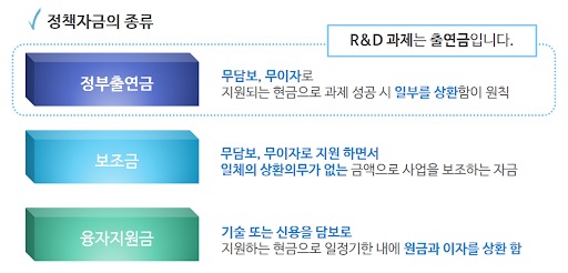 • 지원 방식: 정부 보조금 (매칭 형태의 R&D 자금 지원). 과제 선정 시 1~2년간 개발자금을 무담보로 지급하며, 기업은 일부 자체 부담금을 투입 (예: 정부 75%, 기업 25% 비율)