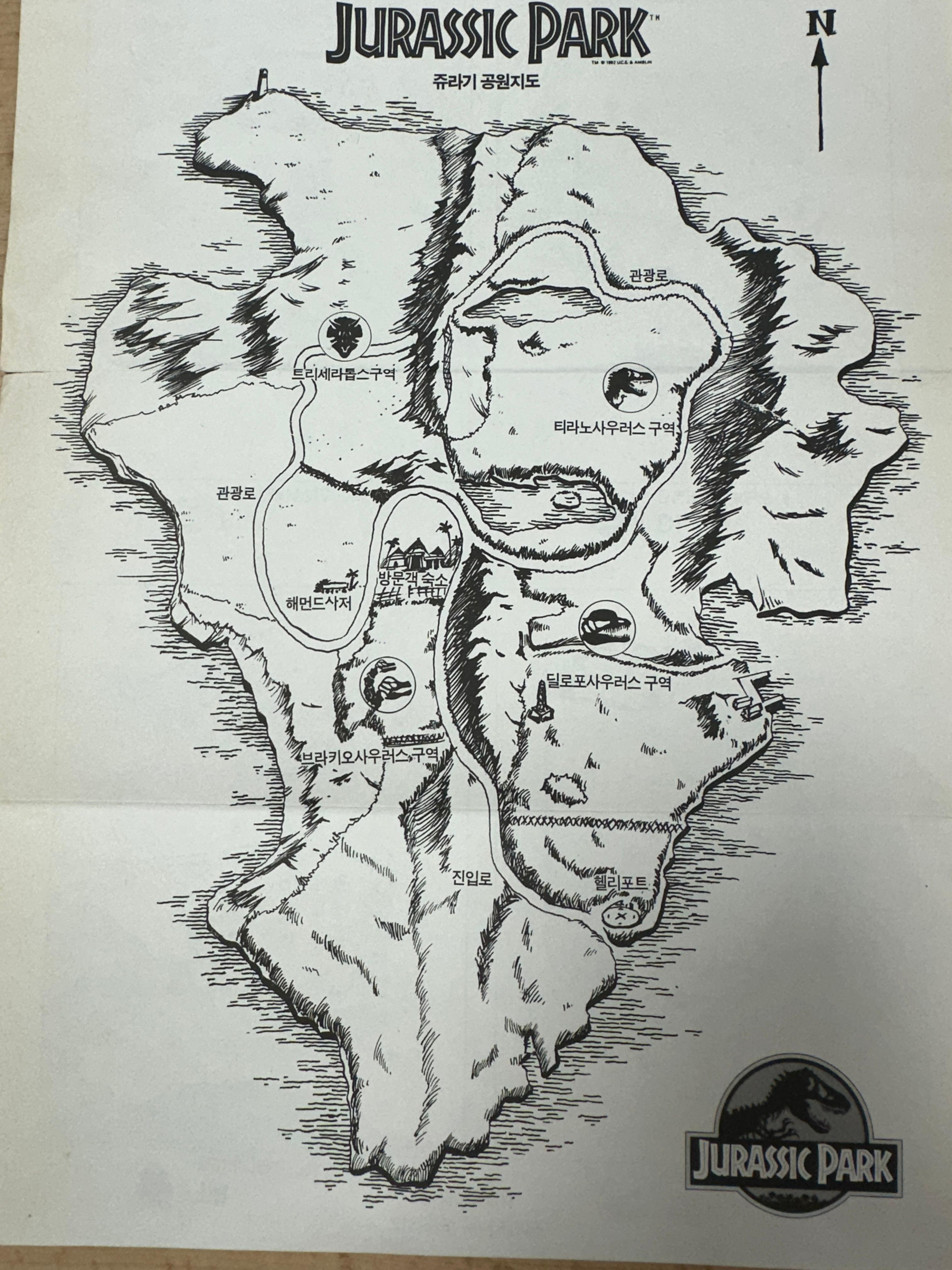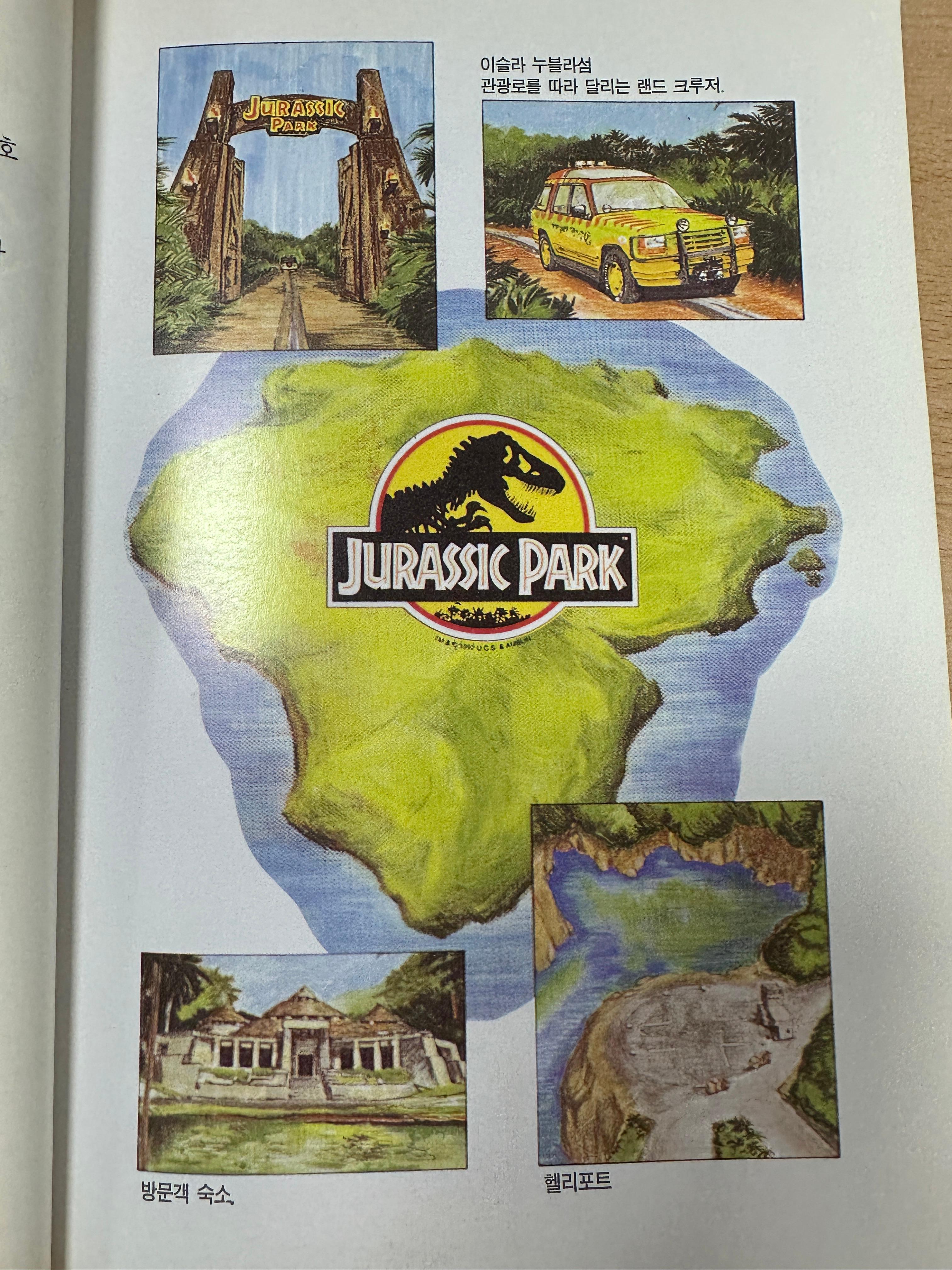 • “あなたはジュラシック・パークに特別招待されたが、事故発生!襲いくる恐竜から逃げきれるか?”(「쥬라시크 파크」 오리지널 안내)  – 게임의 도입부 시나리오를 요약하는 문구다.