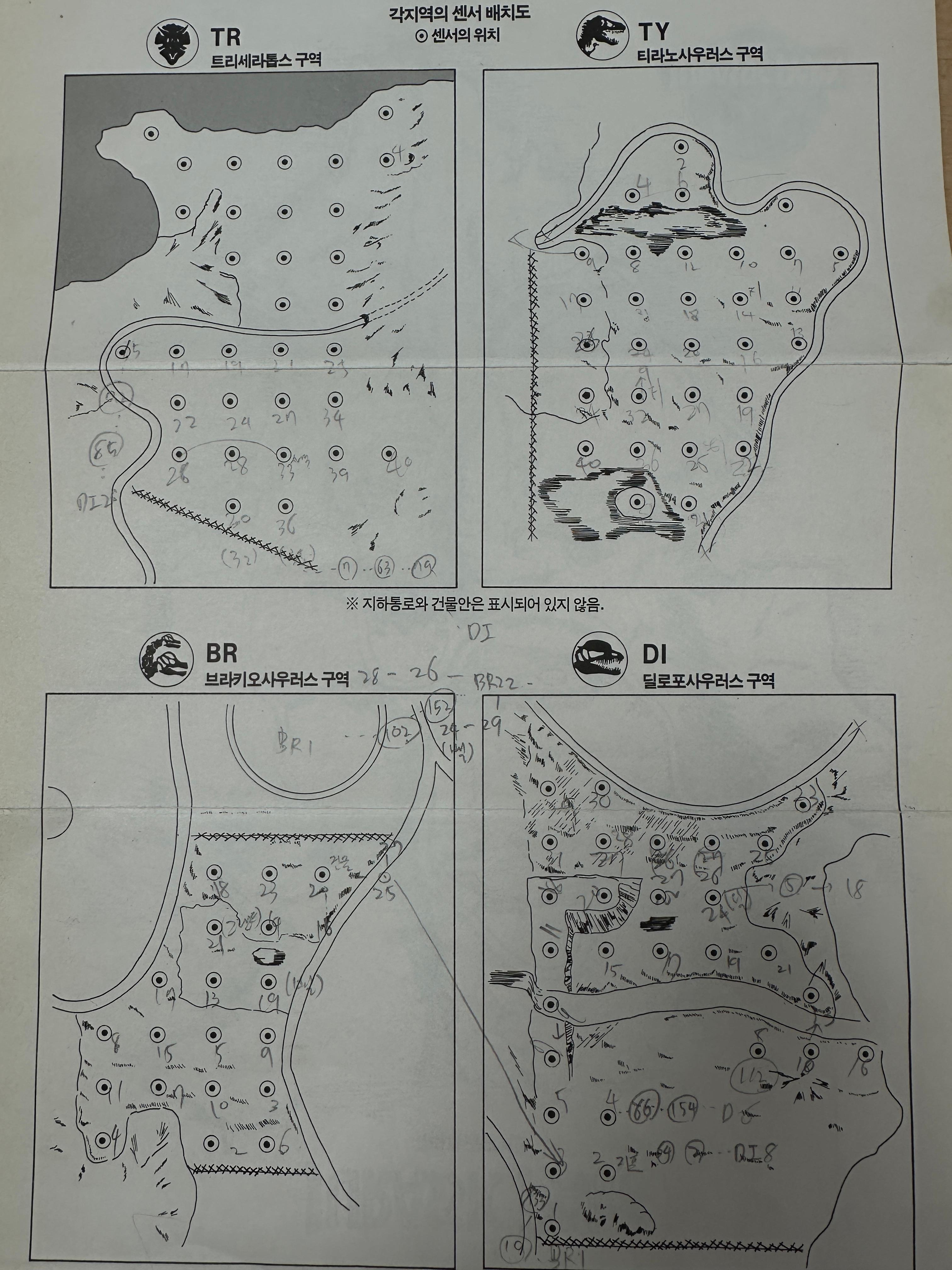 1. 초기 시작(헬리패드 혹은 중앙 탐색) – 게임 초반, 플레이어는 헬기 착륙장 부근이나 중앙 관제실(방문자 센터)에서 시작한다. 선택지에 따라 헬리패드 수리 시도 또는 센터 주변을 탐험하게 된다. 이때 앞서 입력한 체중, 혈액형 등의 정보가 이후 분기에 영향을 미친다 . 예를 들어, 체중이 너무 무겁게 설정되어 있다면 이후 지형 장애물을 넘지 못하고 사망할 수 있다.