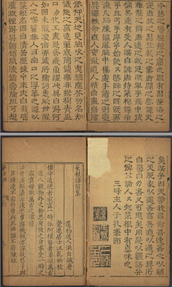 • 『채근담』이라는 제목은 ‘소박한 먹거리(채소 뿌리)를 씹으며 인생의 맛을 되새긴다’는 비유에서 비롯됩니다.