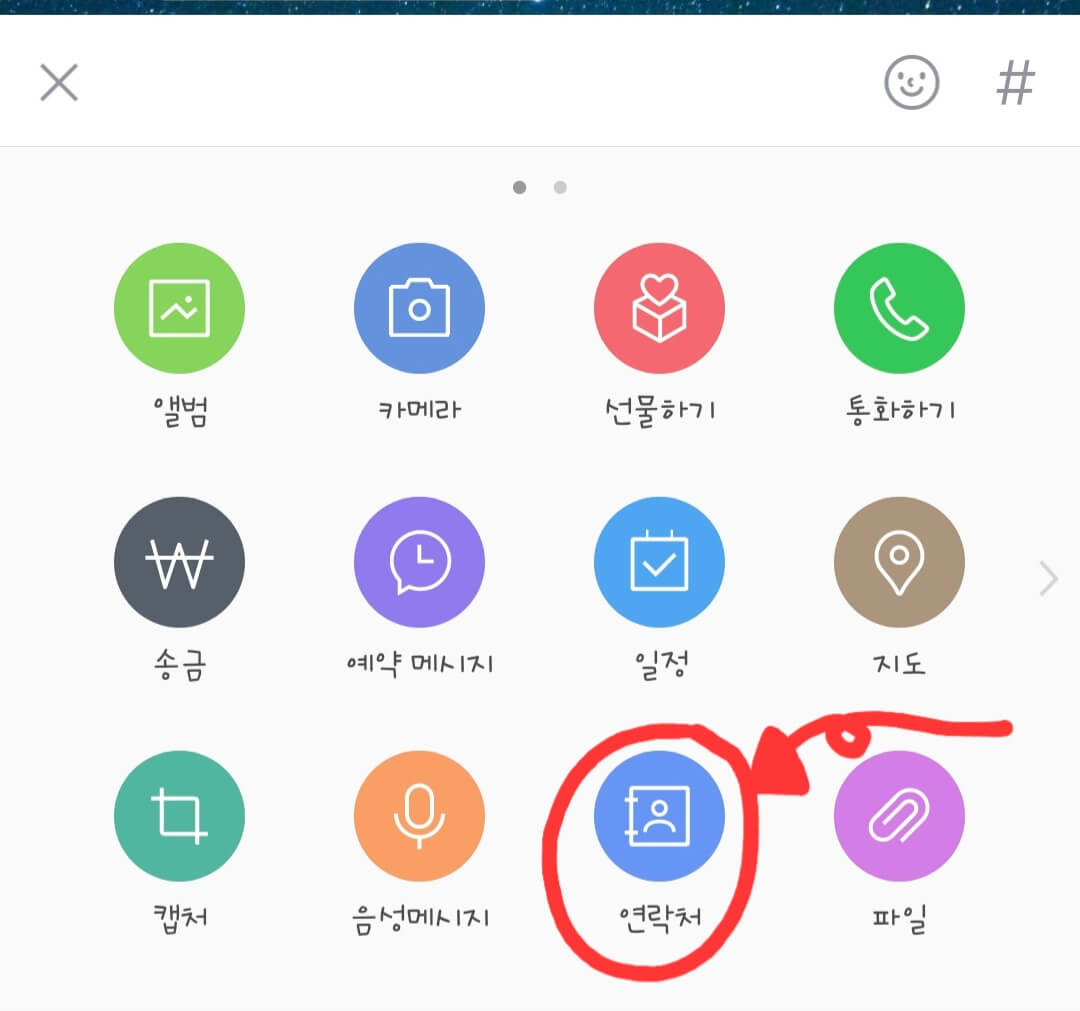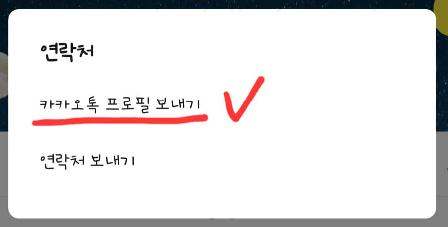 1. 프로필을 공유합니다. 친구의 프로필을 다른 대화방에 ‘이 친구 프로필 보내기’ 기능을 통해 공유합니다.