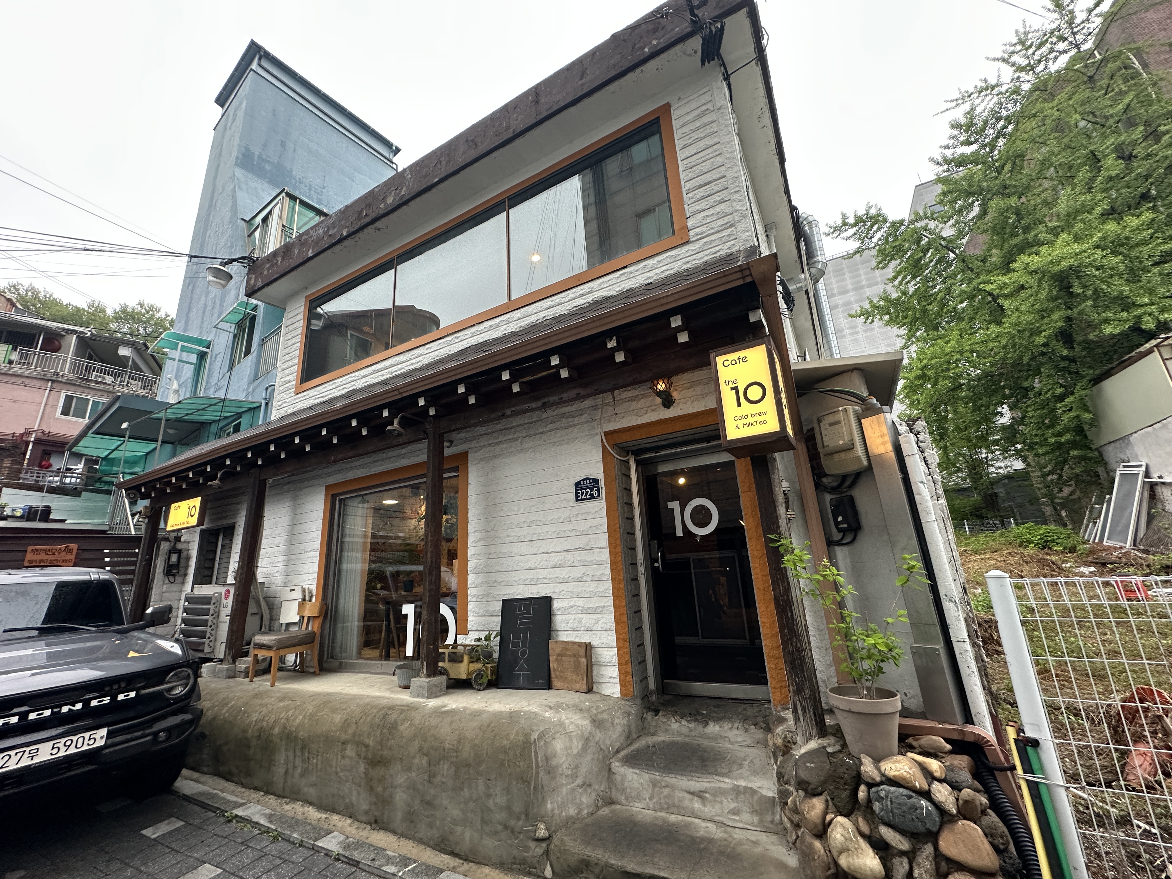 카페 더텐 1호점은 지하철 4호선 성신여대입구역 4번 출구 인근에 위치해 있으며, 도보 3~5분 정도의 거리에 있습니다 . 출구를 나와 성북로4길 방면으로 직진하면 보이는 한신한진아파트 상가 1층에 자리하고 있는데, 큰 길가에서는 살짝 안쪽으로 들어온 곳이라 처음 가는 경우 다소 눈에 띄지 않을 수 있습니다. 찾는 요령은 한양도성 순성길(서울 성곽 길) 방면으로 난 골목을 따라 들어가는 것으로, 카페 외부에 영문으로 *“Cafe the 10”*이라 쓰인 간판과 함께 *“Cold Brew & Matcha”*라는 문구가 보여 금방 알아챌 수 있습니다. 주변에 동일한 이름의 카페는 없으므로 네이버 지도 등에서 *“카페 더텐”*을 검색하면 바로 위치 파악이 가능합니다. 대중교통 접근성이 좋아 지하철 외에 버스로도 이용할 수 있는데, 성신여대입구 정류장에 하차하면 금방입니다. 다만 전용 주차공간은 따로 없어 차량 방문 시 인근 유료주차장을 이용해야 합니다.