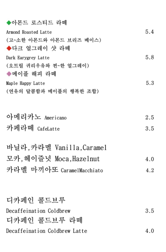 • 풍미 깊은 커피: 커피 본연의 맛을 중요시하는 고객에게 적합한 메뉴 구성을 갖추고 있습니다.