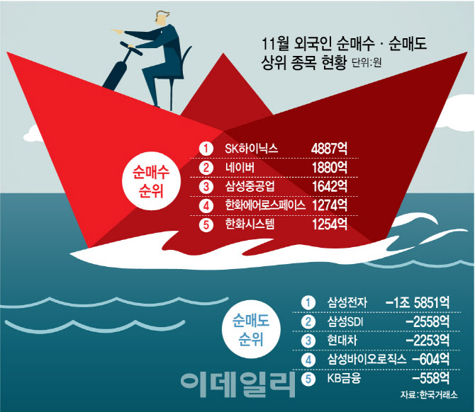 트럼프 대통령의 재선은 자국 우선주의와 보호무역주의 기조를 강화할 것으로 예상되며, 이는 외국인 투자자들의 매도와 매수 전략에 큰 영향을 미쳤습니다. 반도체와 자동차 업종과 같이 트럼프의 보호무역 정책에 민감하게 반응할 수 있는 업종에서는 외국인들의 매도세가 강하게 나타났습니다. 특히 삼성전자와 삼성SDI는 미국 내 보조금 정책이 폐지될 경우 경쟁력을 잃을 수 있다는 우려로 인해 순매도 상위에 올랐습니다.