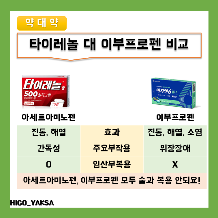 한눈에 보는 아세트아미노펜 vs 이부프로펜