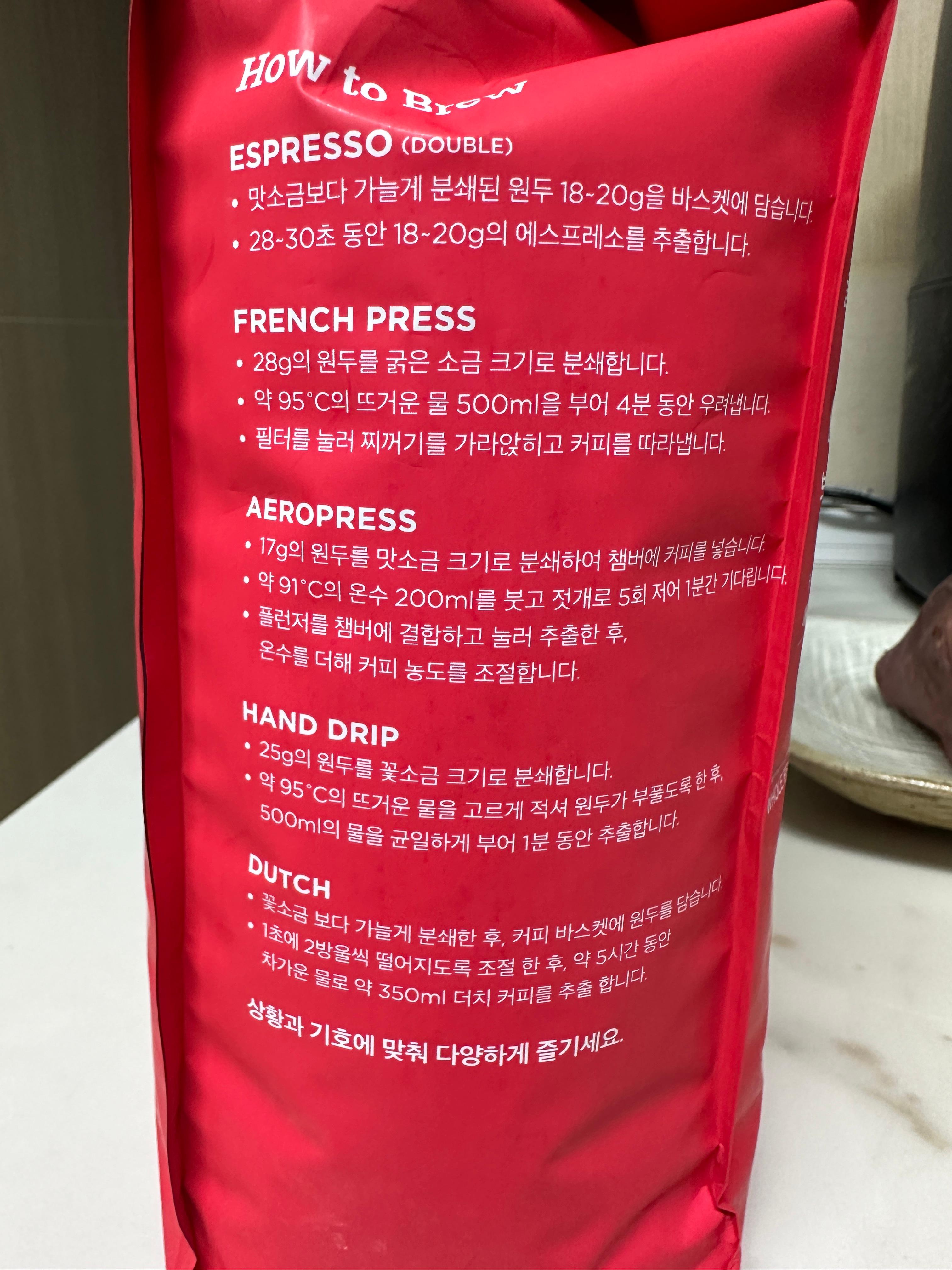 • 다목적 원두: 다양한 추출 방식에서도 고유의 맛을 잃지 않음.