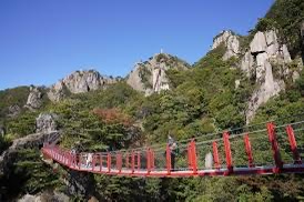 금강구름다리는 해발 약 300m 높이에 설치된 길이 50m의 현수교로, 다리 위에서 바라보는 깊은 계곡과 기암괴석은 스릴과 함께 멋진 풍경을 제공합니다.