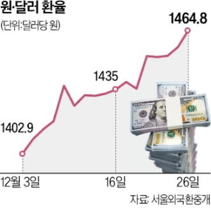 • 1997년 말, 원/달러 환율은 급격히 상승하여 1,500원을 돌파했으며, 최고 1,964.8원(1997년 12월 24일)을 기록했습니다.
