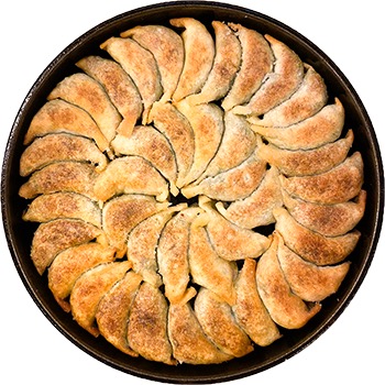 博多にある博多 祇園 鉄なべです。鉄なべの形に丸く焼き上がった自慢の餃子は全部手作りで美味。近くの櫛田神社で飾り山笠も見物できます。