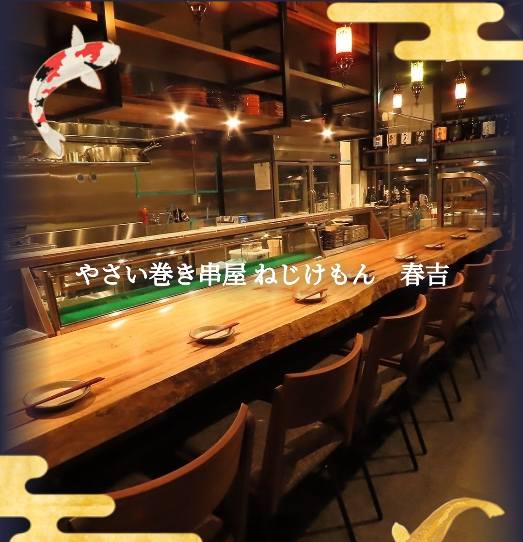春吉の居酒屋、やさい巻き串屋 ねじけもん 春吉のホームページです。お店の基本情報やおすすめ料理の「【ねじけもん名物♪】旬の野菜を豚バラやベーコンで巻いた「やさい巻き串」(275