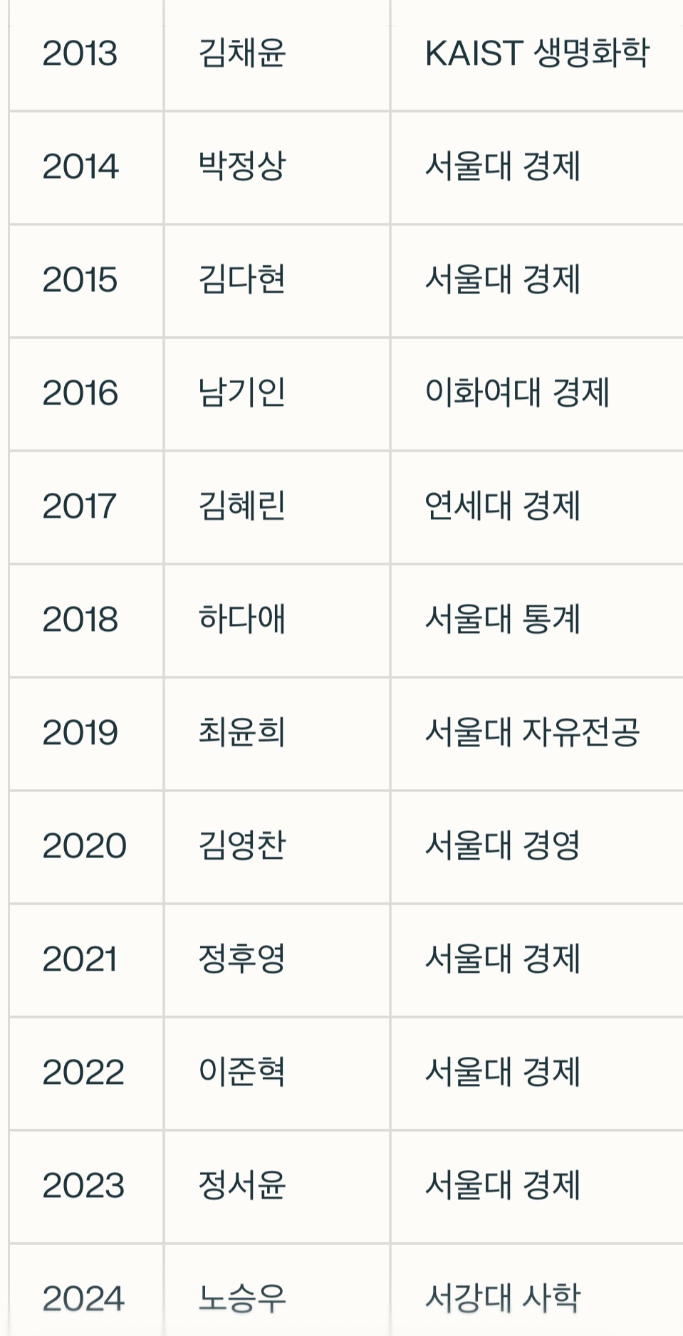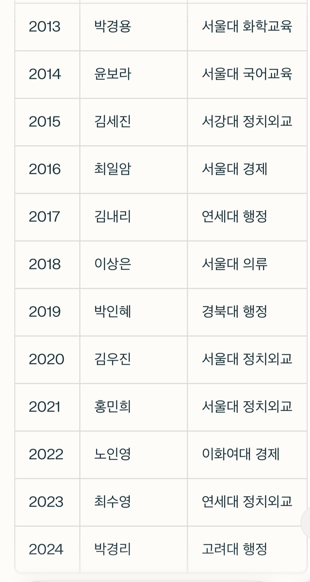2022~2024년 수석 중 이화여대(일행 수석), 서강대(재경 수석)가 이례적으로 이름을 올리며 서울대 독주 체제에 또다른 변주를시도되고 있습니다.