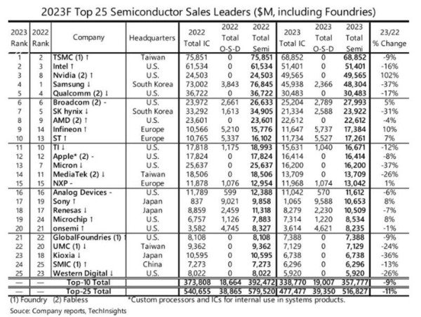 2023년 반도체 기업 매출 순위