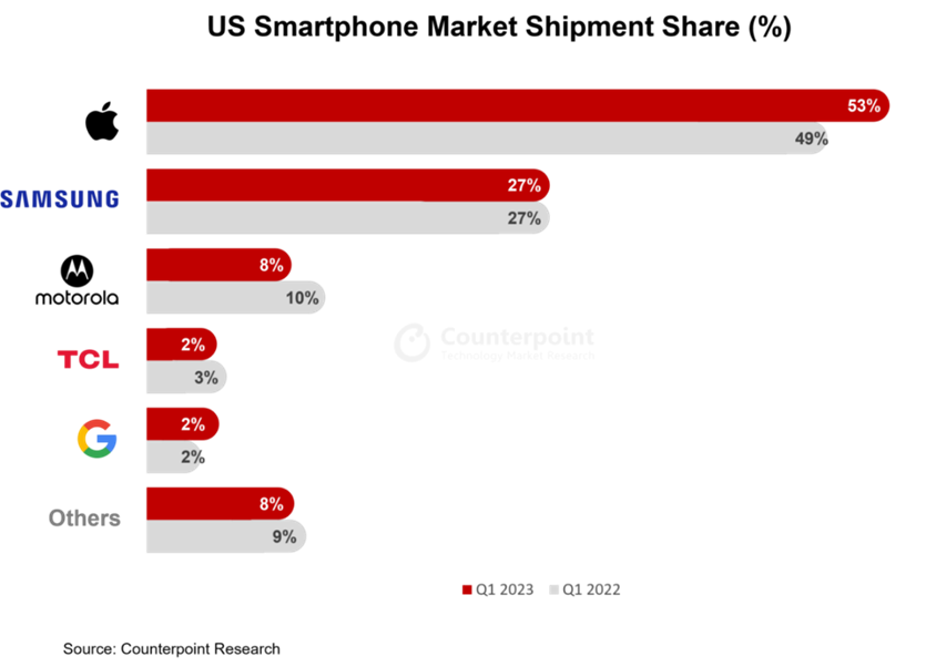 번외 : 2023년 1분기 미국 스마트폰 시장 점유율