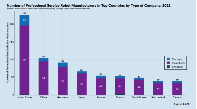 인도는 인공지능 관련 기업의 투자가 2022년 약 50억 달러로 세계에서 네 번째로 많으며, 인공지능 관련 기업의 수익도 2022년 약 80억 달러로 세계에서 네 번째로 많습니다. 인도는 인공지능 분야의 혁신과 창업을 촉진하며, 인공지능 관련 산업의 성장이 2022년 약 12%로 세계에서 두 번째로 높습니다.