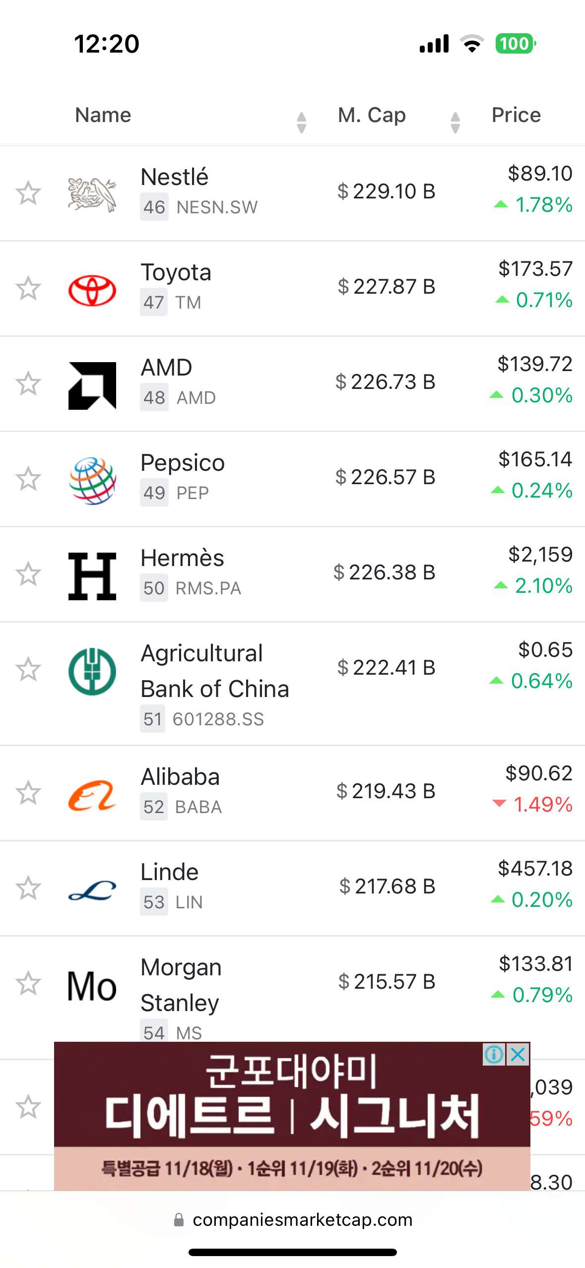 다음은 2024년 11월 기준 시가총액 상위 50개 기업의 개요, 주요 사업 분야, 국적에 대한 설명입니다.
