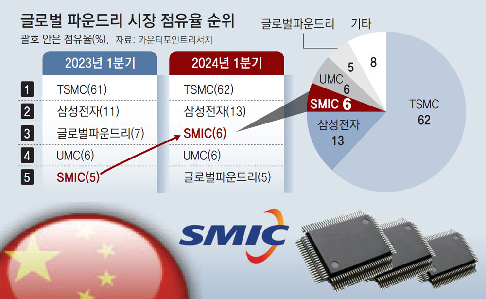3위인 중국의 SMIC는 5.7%의 시장 점유율을 차지하고 있으며, 그 뒤를 대만 UMC(5.3%), 미국 글로벌파운드리(4.9%), 중국 화홍그룹(2.1%)이 따르고 있습니다. 이처럼 삼성전자는 여전히 2위를 지키고는 있지만, SMIC와의 격차가 5% 내외로 줄어들고 있어 경쟁력이 떨어지면 3위로 밀려날 가능성도 충분합니다.