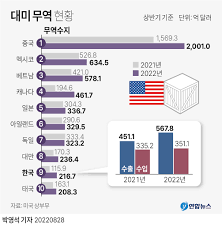 무역수지: 2023년 대미 무역수지는 444억 불로 역대 최고치를 기록했습니다.