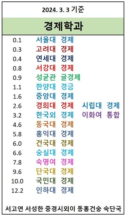 2024년 국내 주요 대학 경제학과 입결 순위와 각 대학별 경제학과의 특징을 더 자세히 살펴보겠습니다.