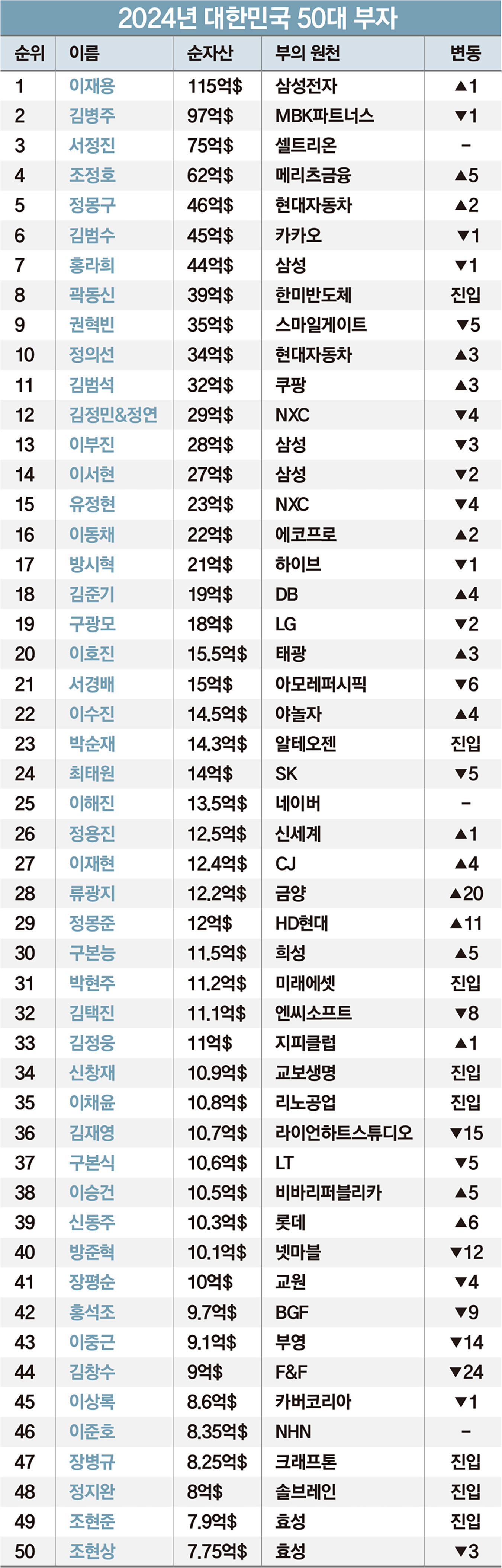 • 크래프톤 창업자, 순위에 새롭게 진입.