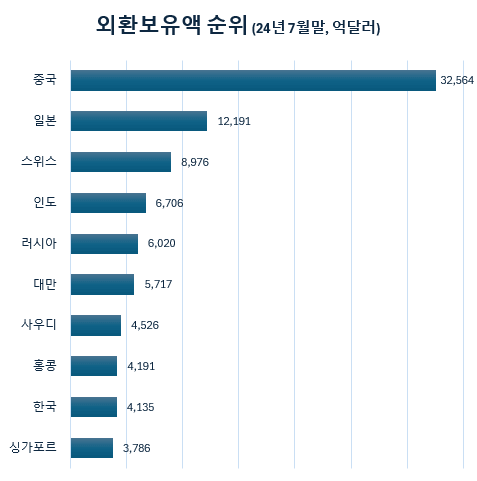 이들 국가는 대부분 강력한 경제 기반과 전략적인 산업을 보유하고 있으며, 외환보유고는 경제 안정성과 위기 대응 능력을 높이는 중요한 자산으로 작용합니다.