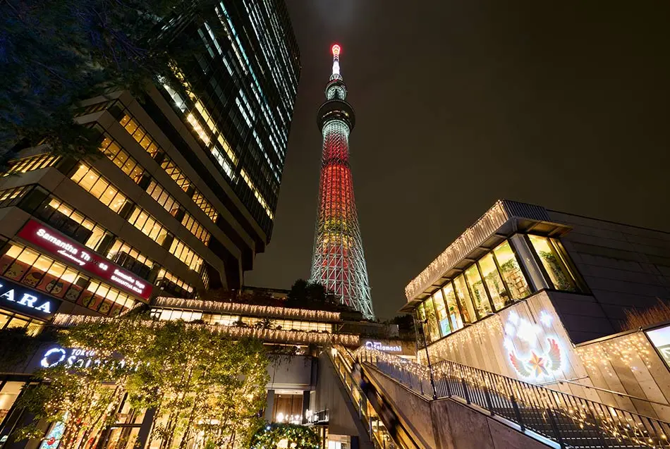 • 특징: 도쿄 스카이트리를 배경으로 8m 높이의 대형 크리스마스 트리와 LED 라이트 연출.
