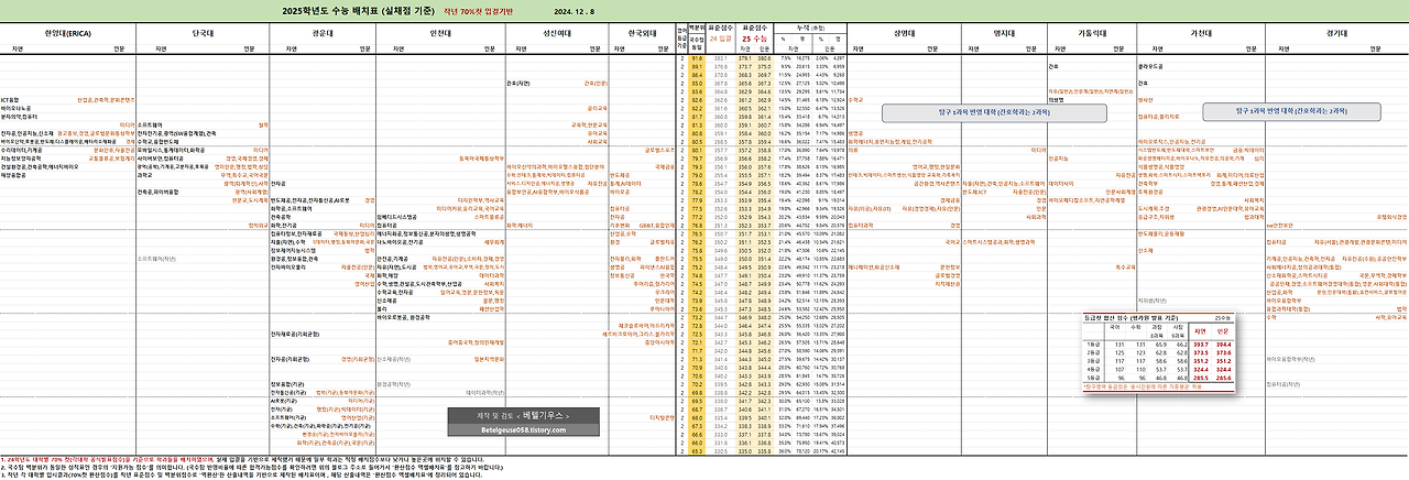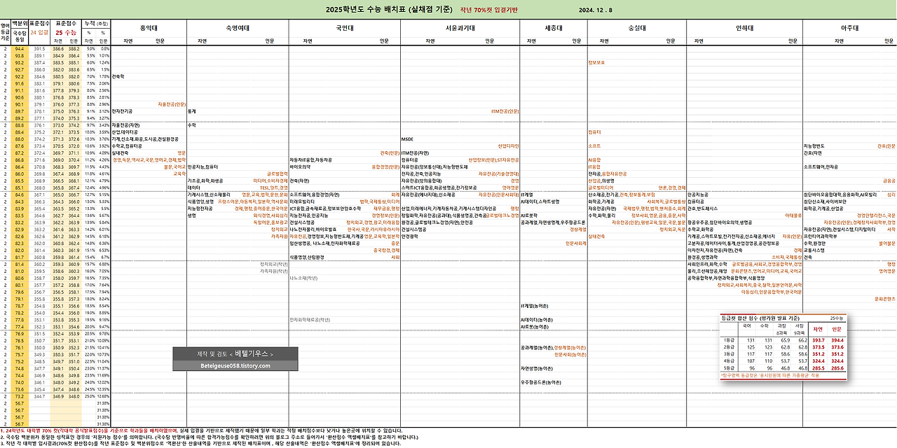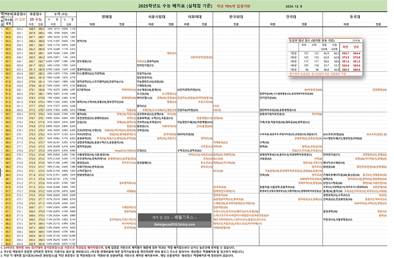 (출처는 입시전문가 베텔기우스의 2025 입결 배치표입니다)
