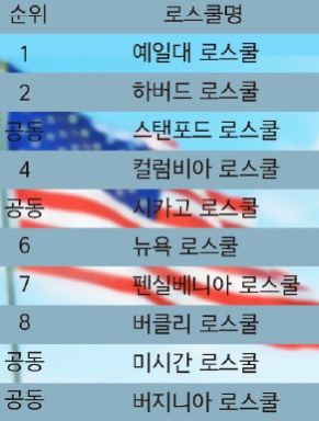 1 (공동) Yale University (예일 법대) $76,400 내외 5.5%  175  3.96  96.5%  78% ^4^
