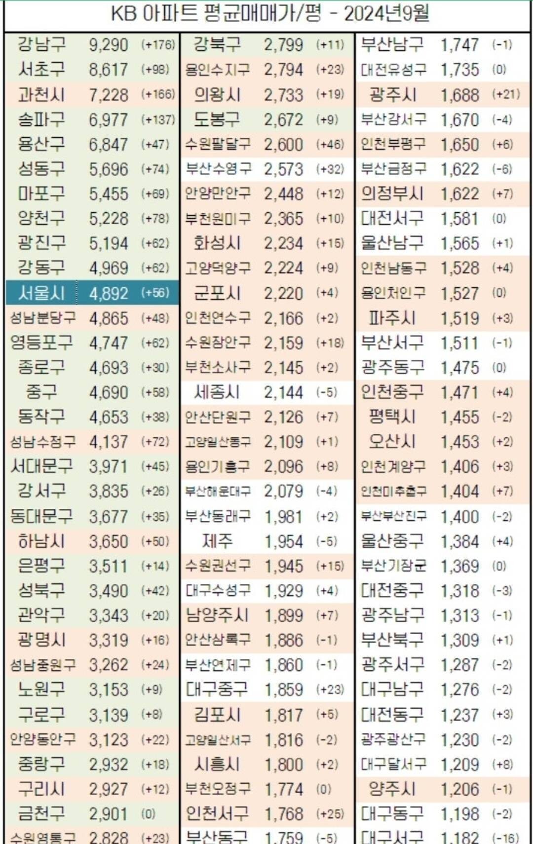 • 강남3구(강남, 서초, 송파)는 여전히 독보적인 고가 유지