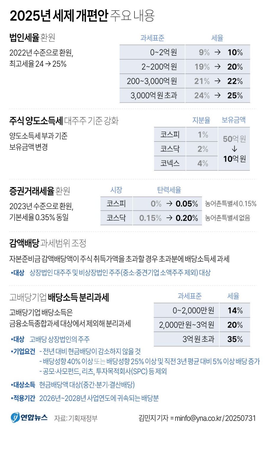 참고자료: 기획재정부 보도자료, 2025년 세제개편안 요약본 및 상세본  ; 조세전문가 해설  ; 관련 법령 개정안; 주요 언론보도 (중앙일보, 한겨레, 동아일보 등)    .