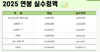 3. 2025년 연봉 실수령액표 (일반 사례 예시)