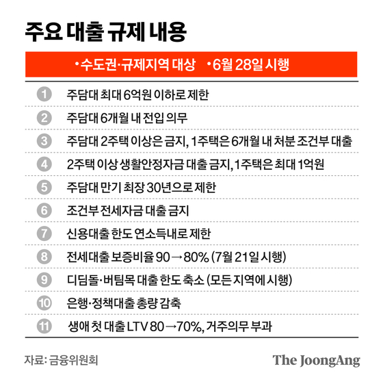 2025년 6월 28일부터 수도권 및 규제지역에서 시행되는 11가지 주택담보대출 규제는 다음과 같다  :