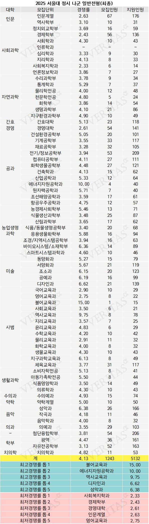 2025학년도 서울대 정시 최종 경쟁률: 과별 전형 상세 분석