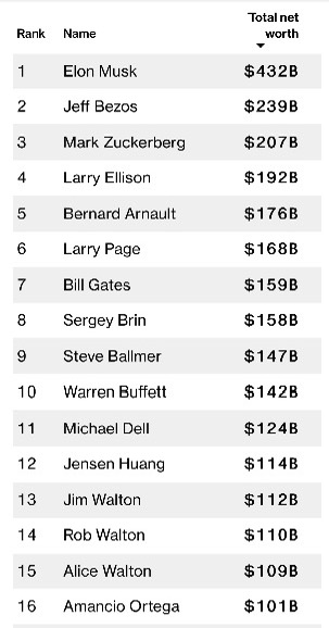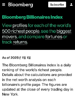 2025 세계 부자 순위 1위 ~ 100위
