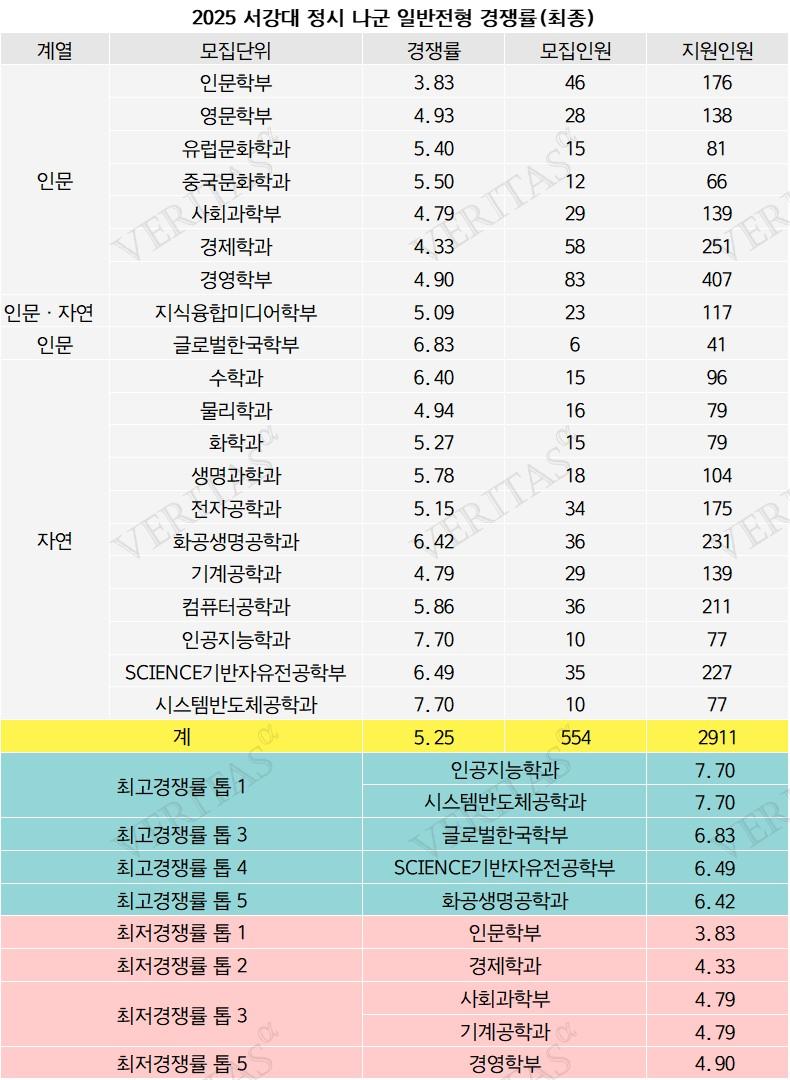 • 나군: 554명 모집에 2,911명 지원, 경쟁률 5.25대 1로 전년도 4.77대 1보다 상승했습니다.